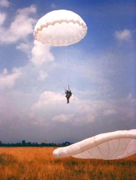 Then I finished the military service with more than 30 , with two jumps in the night ( really crazy stuff! ) and one simulating to be under the fire of the enemy , from 120 m. (400 ft) ! . . . you have to pray that everything is alright because , from that high , you would' t have the time to use the emergency one . . .