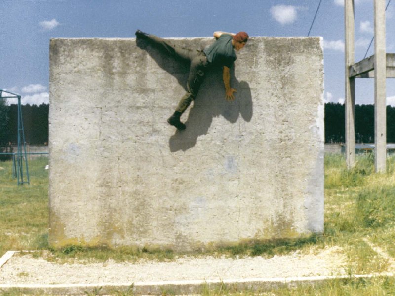 This is called the " Wall of cry" because it's the end of a strenuos physical test . . . and , when you arrive there , you are so tired that someone is not able to climb it . . .